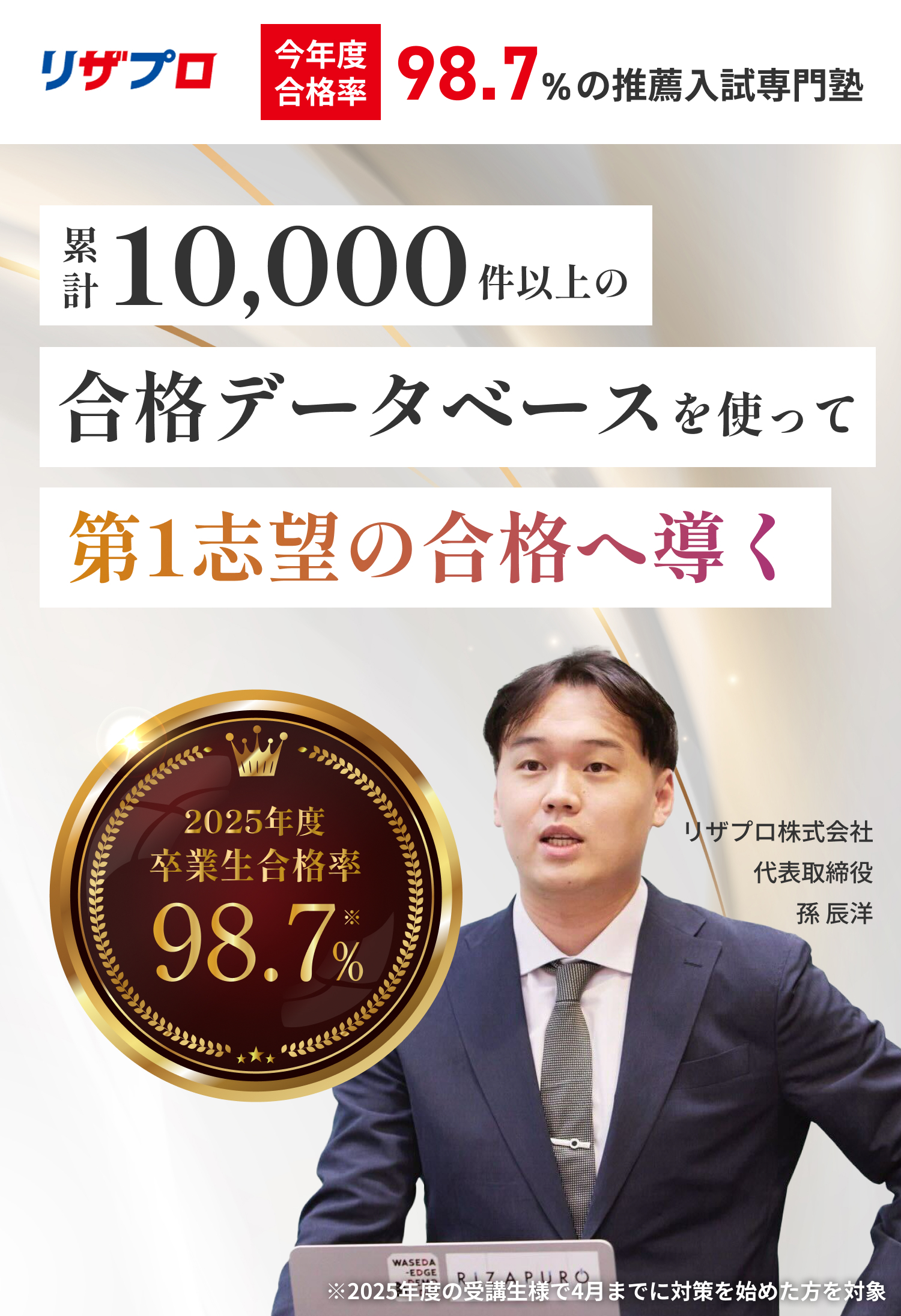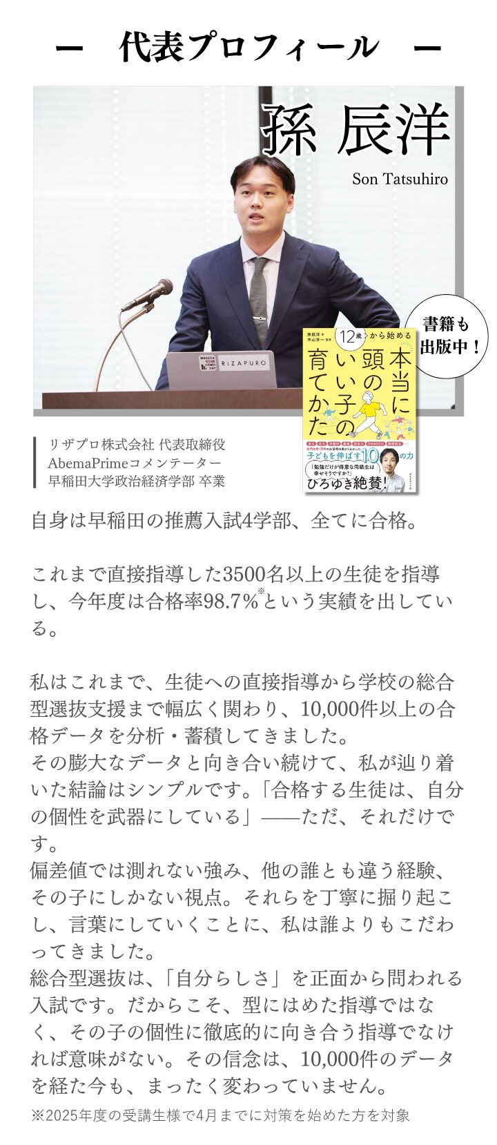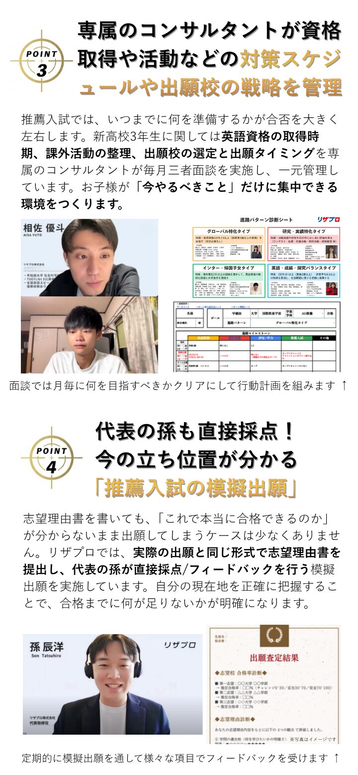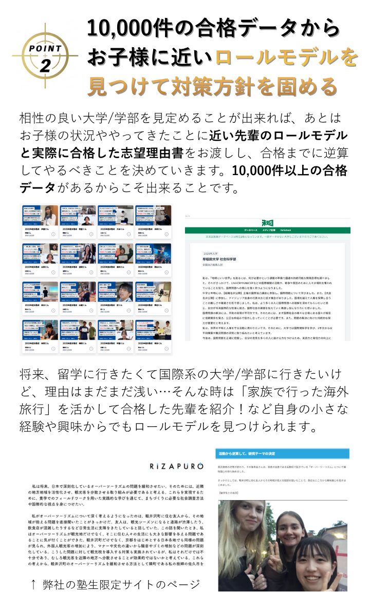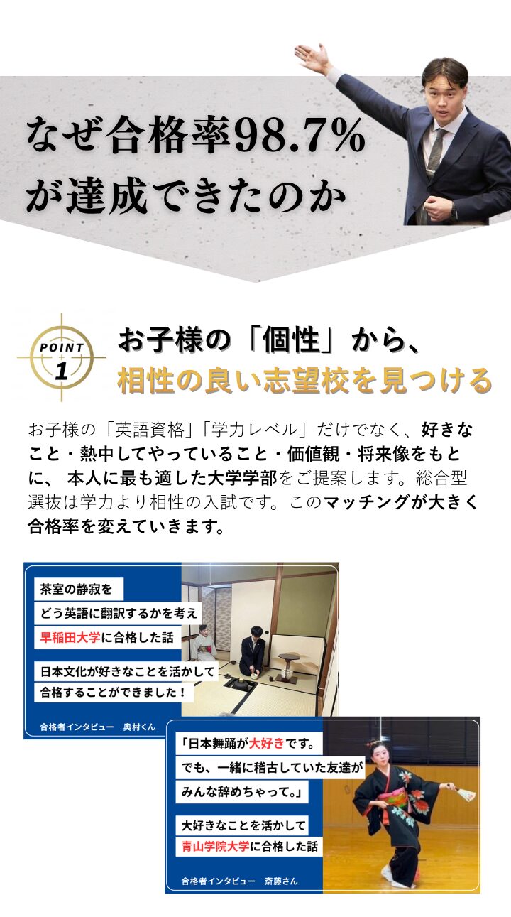 A. 「自分には実績がない」とおっしゃる生徒ほど、面談で可能性が見つかることが多いです。10,000件以上のデータから、合格に必要なのは華やかな実績ではなく、個性の言語化だとわかっています。