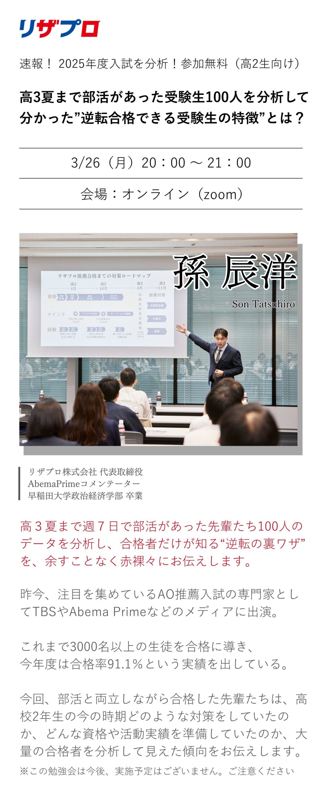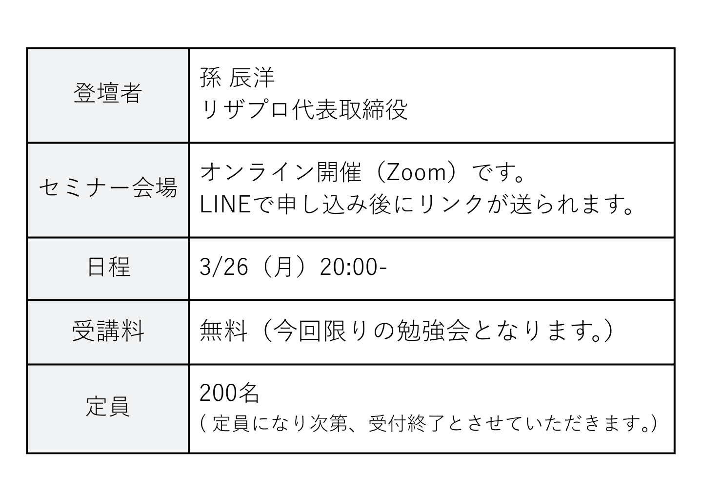 A. リアルタイムで代表の孫がお話させていただきます。アーカイブ配信はございませんので、ご注意下さい。